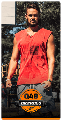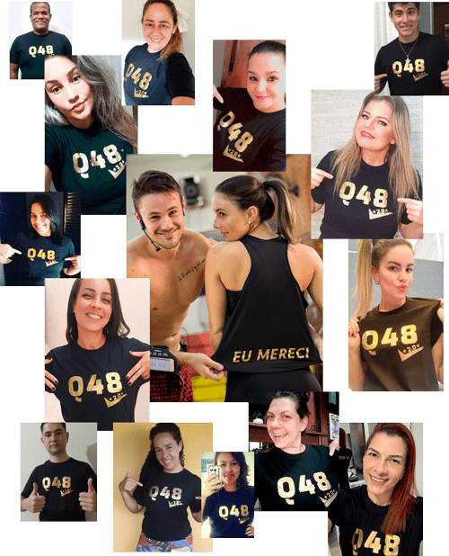 Mande uma foto de antes e depois, grave um depoimento rápido e receba em casa esta camiseta exclusiva Q48 2.0.